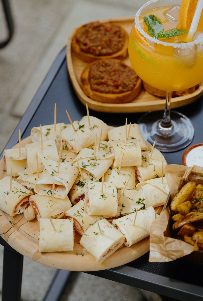 Wir servieren Ihnen selbstgemachte Häppchen und feine Getränke.